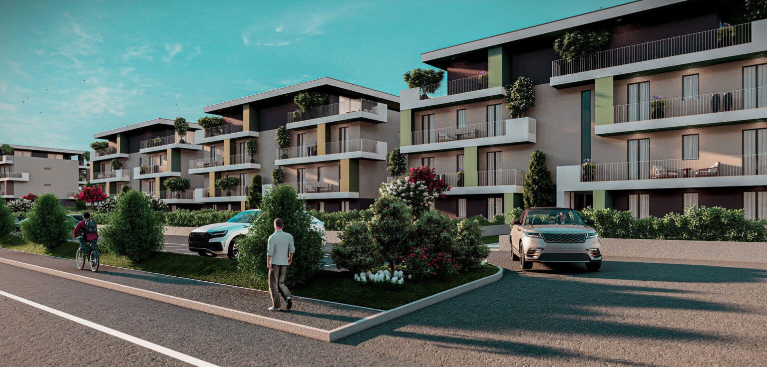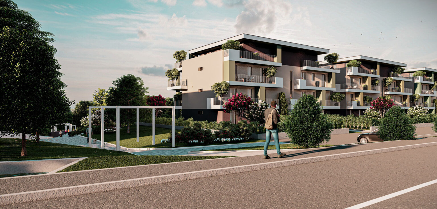 “Marmorea – Le Residenze” sarà costituita da 6 palazzine, per un totale di 56 appartamenti, dal bilocale all’attico. Le rifiniture saranno di prestigio, richiamandosi sia ad elementi tradizionali che moderni, e la progettazione è stata svolta nell’ottica del risparmio energetico, a partire dalle finestre e dal riscaldamento, per finire agli ampi spazi comuni con impianto fotovoltaico in condivisione.